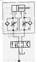 另一種接入節(jié)流閥以改變液壓缸運(yùn)動(dòng)速度的辦法是在液壓缸行程末端有兩個(gè)引出口,如圖3 .2-6所示,當(dāng)活塞左行把口2關(guān)閉時(shí),油通過口1經(jīng)節(jié)流閥5流回油箱,從而使液壓缸減速。同樣,當(dāng)右行而關(guān)閉出油口3時(shí),節(jié)流閥6起作用而使液壓缸減速。