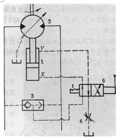 1-變量缸;2-馬達(dá);3-梭閥;4-節(jié)流閥;5-手動換向閥