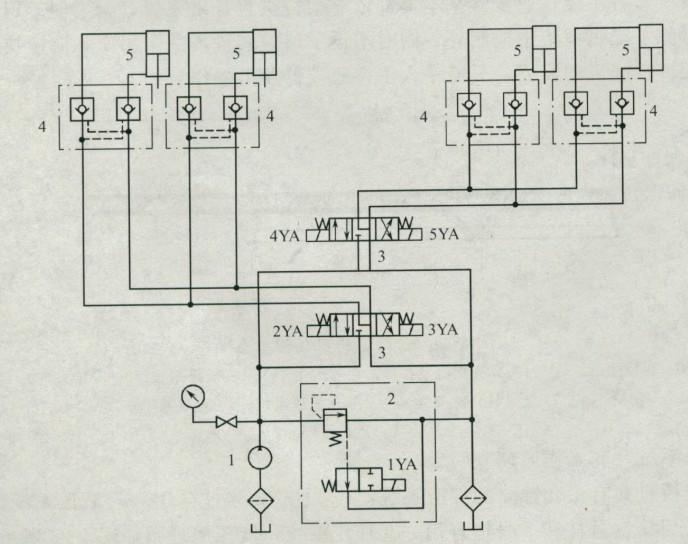 3)該架橋機(jī)的3套液壓系統(tǒng)均采用電磁換向閥、雙向液壓鎖、同步閥控制回路。