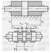 圖6—40c為四邊滑閥控制式,它有四個控制邊。xs1和xs2是控制壓力油進入液壓缸左、右油腔的,xs3和xs4是控制左、右油腔通向油箱的。當(dāng)滑閥移動時,xs1和xs4增大,xs1和xs4減小,或相反,這樣就控制了進入液壓缸左、右腔的油液壓力和流量,從而控制了液壓缸的運動速度和方向。