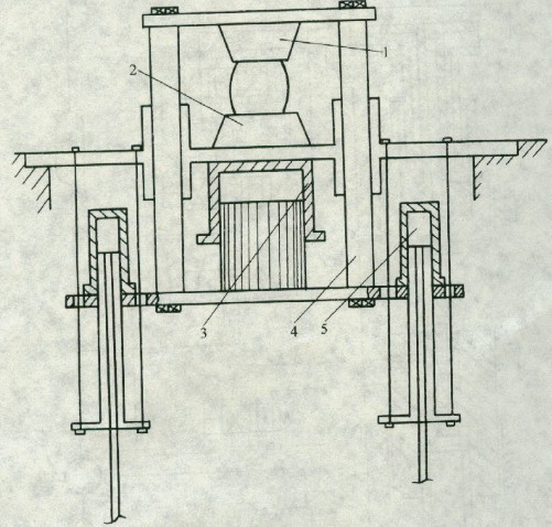 鍛機(jī)缸壓 鍛壓終了時(shí),主液壓缸5處于高壓狀態(tài),為了防止沖擊,鍛壓回程前必須緩慢卸壓。這時(shí)橋臂1、3、4液阻為無(wú)限大,而橋臂2液阻必須處于高阻值狀態(tài)。為了提高生產(chǎn)率,在不產(chǎn)生沖擊的條件下應(yīng)使卸壓過(guò)程盡可能縮短,因而采用了兩段卸壓過(guò)程。這一功能是由可變液阻2.2、插裝閥2.3和液控?fù)Q向閥2.4共同完成的。在高壓卸壓狀態(tài)時(shí),2.4使2.3關(guān)閉,插裝閥2.1上腔的壓力油只能經(jīng)2.2流出,使2.1緩慢開(kāi)啟以便液壓缸5緩慢卸壓;當(dāng)壓力低到一定值后,2.4使2.3開(kāi)起,液阻2.2被短路,結(jié)果插裝閥2.1快速開(kāi)啟,加快卸壓過(guò)程。
