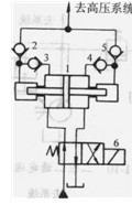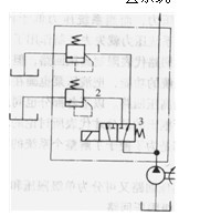 1)通過(guò)換向閥換接不同設(shè)定壓力的溢流閥