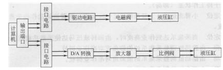 由于林木球果采集作業(yè)對動作精度的要求不高,同時為了降低生產(chǎn)成本、便于推廣應(yīng)用,故采用開環(huán)控制的計算機數(shù)字程序控制系統(tǒng)(見圖8-26)。其控制參數(shù)有6個電磁換向閥為12個開關(guān)量,加2個電磁溢流閥,共14個開關(guān)量,2個電液比例調(diào)速閥為2個模擬量。