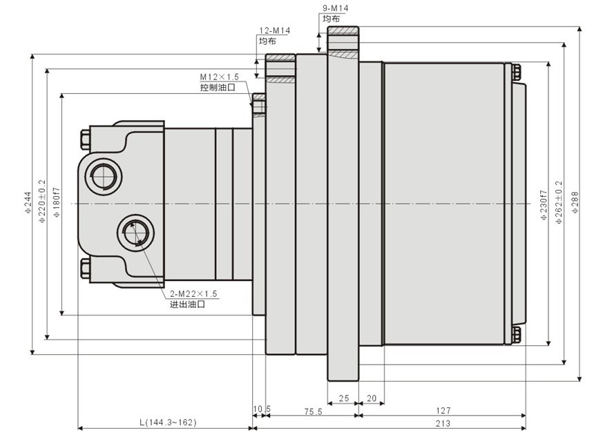 XZA系列履帶(車輪)液壓行走馬達(dá)由液壓馬達(dá)、制動器、行星減速器、閥組等組成。為外殼傳動,可直接與車輪或履帶驅(qū)動輪相連接,工作可靠、效率高。采用的是高承載圓錐滾子軸承設(shè)計(jì),使其完全具備承載挖掘機(jī)在工作和轉(zhuǎn)彎時(shí)所產(chǎn)生的軸向力和徑向力。本產(chǎn)品結(jié)構(gòu)緊湊、外形美觀、性能優(yōu)越,可直接替代進(jìn)口產(chǎn)品,廣泛用于鉆機(jī)、非開挖鉆機(jī)、巖土鉆機(jī)、潛孔鉆機(jī)、旋挖鉆機(jī)、掘進(jìn)機(jī)的履帶行走機(jī)構(gòu)和軌道車輛、工程車輛等設(shè)備中。 XZA系列安裝聯(lián)接尺寸